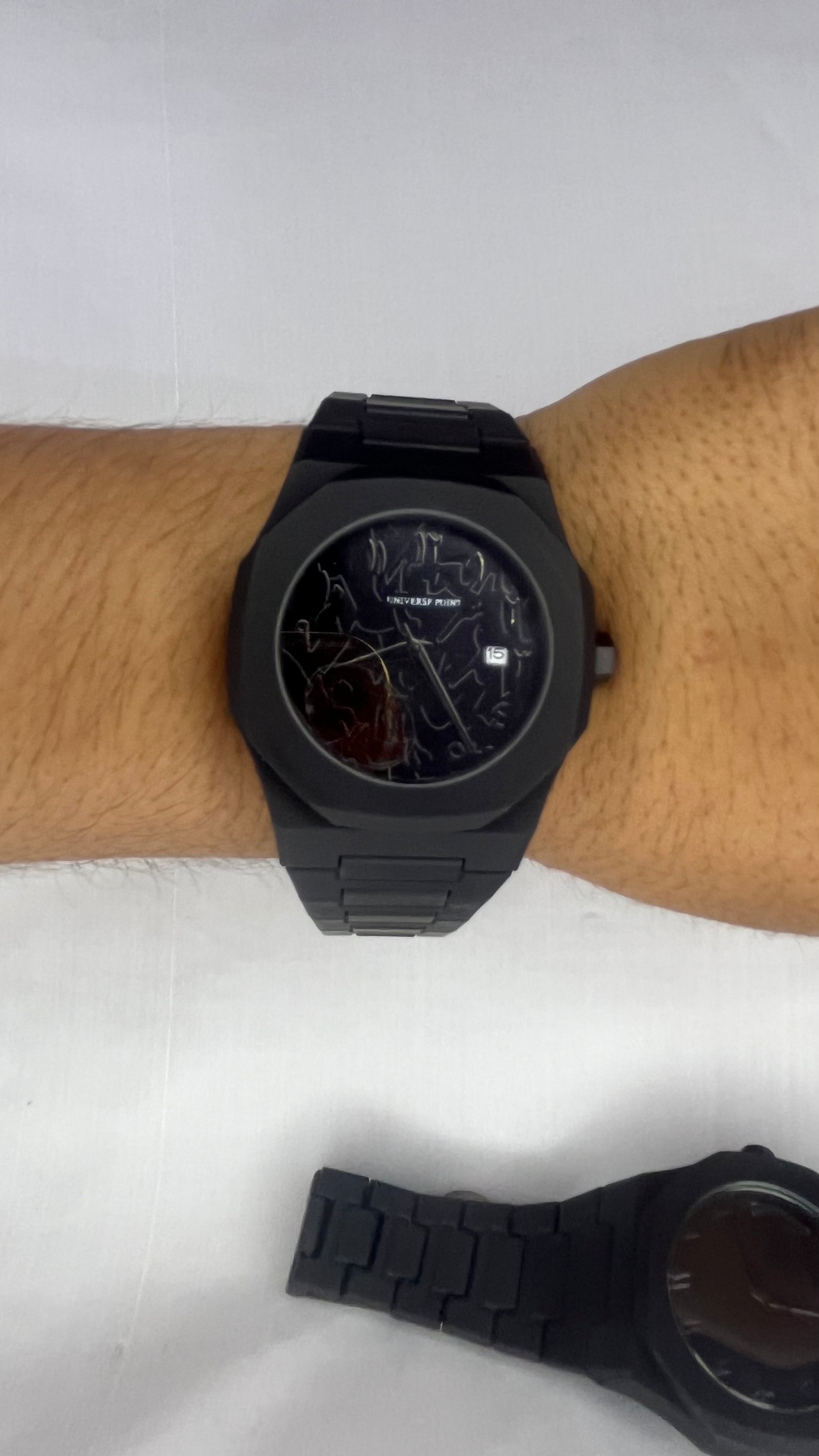 Case: Durable stainless steel case with a sleek matte black finish for a sophisticated look.